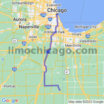 Travel distance from Chicago to Iroquois, Illinois is 95 and travel time 1 hour 45 mins. During peak hours approaching Chicago downtown can be really slow due to heavy traffic. Windy city has a strange habit of generating heavy traffic during a regular day due to a weather as well as at night time due to construction blockages. So if you are planning a limo trip to the loop for a meeting add a dozen of minutes or two on top of this travel time. Just to be safe ;).