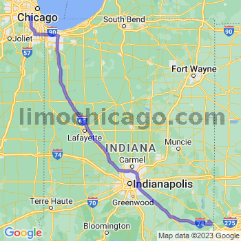 Travel distance from Chicago to New Trenton, Indiana is 273 and travel time 4 hours 39 mins. During peak hours approaching Chicago downtown can be really slow due to heavy traffic. Windy city has a strange habit of generating heavy traffic during a regular day due to a weather as well as at night time due to construction blockages. So if you are planning a limo trip to the loop for a meeting add a dozen of minutes or two on top of this travel time. Just to be safe ;).