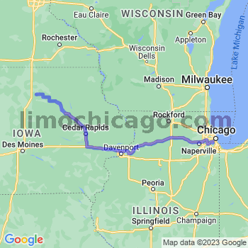Our limo & car service goes from Chicago O'Hare to 50475 zip code in Sheffield, IA. This service area benefits from our Sheffield limousine service, taxi service, car service, shuttle and limo bus to O'Hare airport and Midway airport. Call our transportation specialists at 312-972-9900